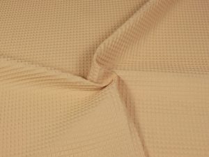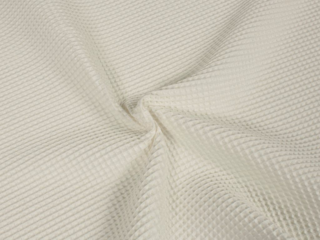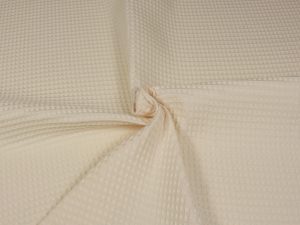 WAFELEK BAWEŁNIANY (WB): 100% bawełna z certyfikatem OEKOTEX. Idealna propozycja na kocyki, otulacze, ręczniki, szlafroki, szaliki, narzutki, pledy, poduszki etc. Materiał pomimo swojej grubości jest bardzo miękki i podatny wiec nada się równie dobrze na sweterki, kombinezony, spódniczki i inne ubranka. Mamy dwie wersje wafelka bawełnianego, które różnią się nieznacznie gramaturą i szerokością.